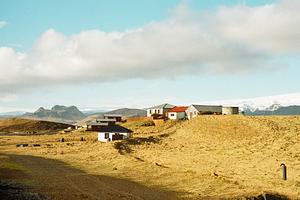 Nestled in the hills just inland from Iceland's famous Black Sand Beach are homes from various generations soaking up the winter sun. Captured on 35mm Kodak Portra 800 Hi-res scan
